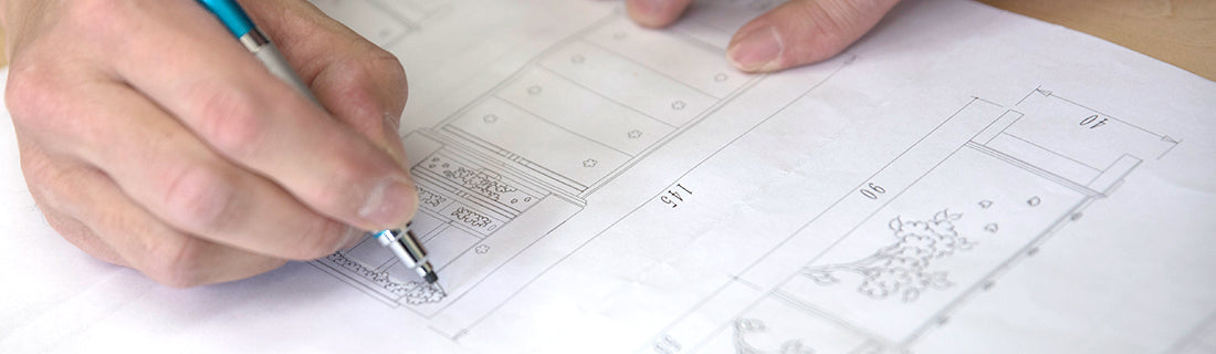 打ち合わせをもとに、彫刻の図案を書き込んだお図面とお見積書をお届け致します。気になる点や変更の希望がございましたら、お気軽にお申し付けください。