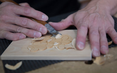 木地師が製作した木地に彫師が考えたデザインを忠実に彫刻を施していきます。
